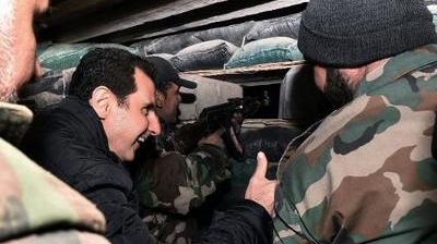 Au milieu des combats en Syrie, où le conflit déclenché en mars 2011 par la répression d'une contestation populaire a dégénéré en une guerre totale, le président Bachar al-Assad s'est déplacé mercredi sur une ligne de front à Damas pour souhaiter à ses soldats "la victoire" pour 2015 face aux rebelles et aux jihadistes.