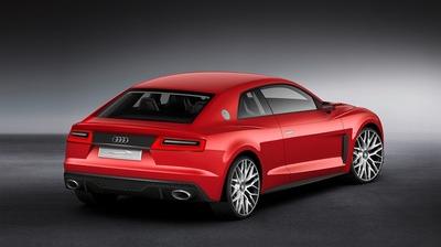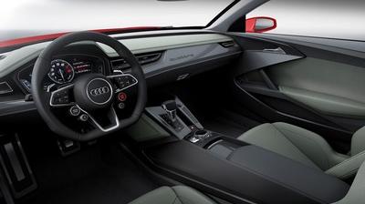 Hormis la couleur, la seule vraie nouveauté est l'utilisation de phares au laser tels ceux pour les bolides pour la course du Mans, la R18 e-tron Quattro 2014. En plus des LED, ceux-ci font appel à des lasers pour les feux de route. Ces grands phares ont une portée de 500 m avec une luminosité trois fois supérieure à celle des LED. À part ça, le concept est toujours inspiré de la Quattro Sport de 1983. Il reste un hybride plug-in avec un V8 essence biturbo de 4.0 l de 560 ch et un moteur électrique de 110 kW (150 ch). Au cumul, cela donne 700 ch et 800 Nm reposant sur un châssis en plastique renforcé à la fibre de carbone.