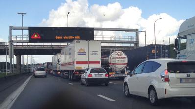 L'autoroute a, un temps, été fermée à la circulation vers la France, mais est maintenant rouverte. Comme le camion accidenté se trouve toujours sur la bande de droite, la circulation se fait uniquement sur la bande de gauche. La police invite à la prudence et conseille de réduire sa vitesse.