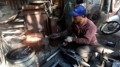 "Ce travail demande beaucoup d'énergie", explique Nguyen The Cach. Agé de 71 ans, il est un ancien forgeron qui vient de quitter le métier pour ouvrir un magasin.