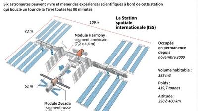 La Station, d'une masse de 450 tonnes, évolue à 400 kilomètres au-dessus de la Terre dont elle fait le tour toutes les 90 minutes, passant donc du jour à la nuit toutes les 45 minutes.