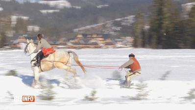 "Trois disciplines sont disputées: le ski-ski joëring – une course à deux, avec une personne à cheval qui tracte un skieur, le ski joëring, où le skieur est tout seul derrière son cheval et la plus importante, les "kumoterki", courses de couples sur ces petits traîneaux dont vient son nom", précise M. Skupien, lui-même en habit traditionnel - pantalon blanc avec un motif brodé appelé "parzenica".