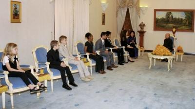Les six enfants de la star américaine, dont trois adoptés, se trouvaient aux côtés de leur mère lors d'une audience que lui a accordée le souverain Norodom Sihamoni avant la projection du film.