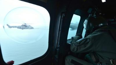 Impressionnante, la masse du MC-130J ravitailleur surgit, tous feux éteints, à quelques mètres de l'hélicoptère Caracal. Plus noire encore que la nuit noire, imperceptible à l'oeil jusqu'au dernier moment, sinon à travers les jumelles de vision nocturne portées par l'équipage de l'hélicoptère, en manoeuvre fin février à 2.000 pieds (600 mètres environ) au large du littoral aquitain.