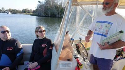 Il accompagne dans un dédale de canaux des groupes de six personnes qui, après avoir visionné une vidéo de savoir-vivre -ne pas poursuivre les lamantins, ni les enlacer notamment-, peuvent nager parmi les mammifères avec masque et tuba.