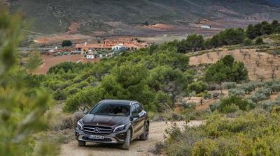 La GLA n'est bien sûr pas un tout terrain, mais ses aptitudes off road nous sont apparues supérieures à ce que nous escomptions. Au cours des cent premiers kilomètres sur une voie rapide, la voiture a fait étalage de son confort tout en consommant relativement peu, grâce, entre autres, à sa bonne efficacité aérodynamique. L'important vent latéral a sans doute un peu terni le bilan en engendrant des bruits aérodynamiques supplémentaires. Les quarante derniers kilomètres du parcours d'essai proposaient des routes de campagne sinueuses en descente, qui nous ont amenés près de Malaga. De quoi jauger les qualités dynamiques de cette Mercedes: nous avons pu constater que la GLA se comporte aussi bien que ses soeurs Classe A et CLA, sans roulis ou tangage excessif.