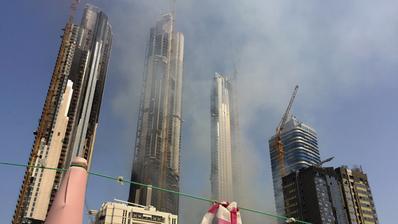 Selon le bureau d'information du gouvernement, le chantier appartient au géant immobilier Emaar. Le complexe en construction comprend trois tours de 60 étages chacune et il devait être livré en avril 2018.