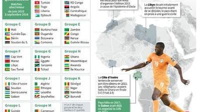 Les groupes de qualifications, tirés au sort à la suite de l'annonce du pays-hôte, incluent le Maroc, qui s'était désisté en novembre de l'organisation de la CAN-2015, officiellement pour cause d'Ebola. D'abord suspendu par la CAF, il a été réintégré aux qualifications après avoir obtenu gain de cause la semaine dernière auprès du Tribunal arbitral du sport (TAS).