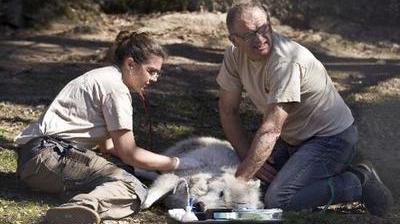 Armé d'un fusil hypodermique et d'un fléchette tranquillisante, le vétérinaire tire dans le flanc d'un loup arctique, qui tente de s'en débarrasser. Jeudi, une vaste opération de sauvetage a mobilisé une soixante de personnes pour évacuer les animaux en péril d'un zoo placé en liquidation judiciaire dans le Puy-de-Dôme.