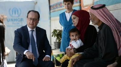 "Ce que demandent ces familles, ce n'est pas d'aller en Europe c'est de pouvoir retourner le plus rapidement chez elles" pour "reconstruire leur pays", a déclaré M. Hollande après s'être entretenu avec des réfugiés et des responsables d'ONG présentes au Liban.