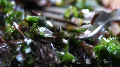 La recette du tartare ? Un tiers de nori (Porphyra), algue rouge très utilisée dans la cuisine japonaise, un tiers de dulse (Palmaria palmata), algue également rouge au goût doux et corsé, un tiers d'ulve, plus connue sous le nom de laitue de mer, trois échalotes, de l'huile d'olive, du citron ou du vinaigre de cidre le composent. "Vous émincez, mélangez, placez deux heures au réfrigérateur et dégustez", conclut André Berthou.