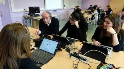 Chaque groupe se concerte à voix basse, les claviers cliquettent. Pas d'onglet Facebook ou Twitter sur les écrans: la classe est étonnamment sage.
