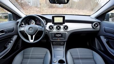 Sans toucher à l'empattement original (2,7 m), il s'agissait pour les ingénieurs de proposer un modèle compact à garde au sol relevée et, au besoin, équipé d'une transmission intégrale. Principes d'essieux (McPherson à l'avant, multibras à l'arrière) et points d'ancrage fixés, ceux-ci se donc principalement concentrés sur la mise à hauteur du châssis (+ 4 cm par rapport à la Classe A) histoire de mettre le plancher du GLA un tant soit peu à l'abri de la caillasse, à un peu plus de 13 cm du sol. Aventurier urbain plus que vrai tout terrain, le GLA reste à la base une "simple" traction, mais il peut aussi recevoir la transmission intégrale 4Matic (déjà vue sur certaines versions des Classe A et CLA) en combinaison exclusive avec la boîte robotisée à 2 embrayages 7G-DCT. Sans surprise, on retrouve aussi sous le capot la plupart des moteurs déjà utilisés par les autres modèles bâtis sur la même plate-forme. Pour le reste, le GLA pioche encore allégrement dans la penderie des Classe A/ CLA pour son mobilier, ses sièges, ses équipements...