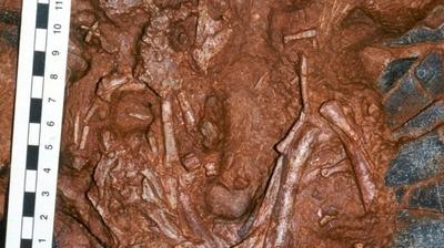 L'histoire récente du fossile été bien agitée. En 1993 un fermier découvre ce qui s'avèrera être une partie d'un grand nid de dinosaures avec des oeufs et des os fossiles.