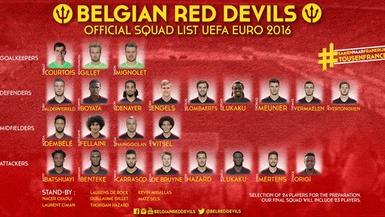 La liste des Diables Rouges qui participeront à l'Euro en France: