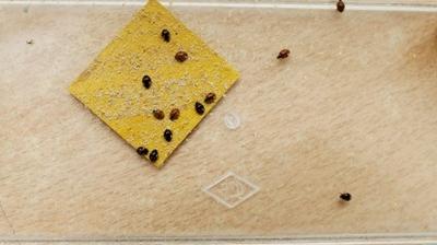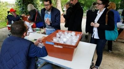 A condition d'avoir déjà repéré des pucerons dans son jardin (sinon les larves n'ont rien à manger et meurent), chacun repart avec sa petite boîte en plastique et ses quelques milligrammes de poudre jaune, des œufs de coccinelles déposés sur une feuille blanche qu'il faudra agrafer sur le végétal infecté une fois les points jaunes devenus noirs, signe que des larves ont vu le jour.