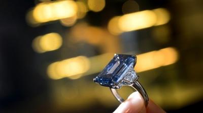 L'actuel record pour un diamant bleu est détenu par le "Blue Moon of Josephine", de 12,03 carats, qui a été acheté pour 48,4 millions de dollars par un magnat de Hong-Kong, Joseph Lau, en novembre 2015 à Genève.
