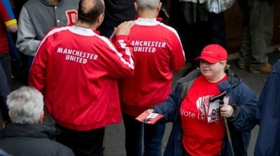 Pile de tracts sous le bras, James Bradley, 38 ans, frappe à la porte d'un modeste pavillon. Quelques secondes plus tard, une femme, Desiree Peacock, 60 ans, apparaît sur le perron, une boîte de conserve ouverte à la main.