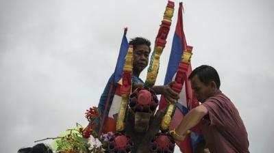 Pour le "Bun Bang Fai", les hommes s'y déguisent en femmes, certains tenant un phallus en bois à la main, "afin de mettre les dieux en colère", explique le site de l'office du tourisme. "Pour se venger, les dieux sont supposés envoyer des éclairs", marquant la très attendue saison des pluies.