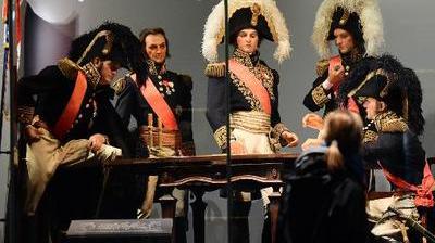 A l'occasion du bicentenaire de la bataille du 18 juin 1815, les vitrines des magasins montrent une profusion de bicornes, d'empereurs juchés sur un cheval blanc et de "grognards".