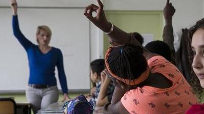 Dans une classe de 6e du collège Clemenceau à Paris, l'enseignante de français tire les rideaux, les enfants enfouissent la tête dans leurs bras, sur leur bureau, et écoutent concentrés la lecture d'un récit de la mythologie grecque.