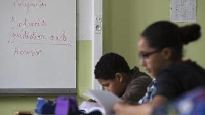 Le cours de français a commencé par un résumé des péripéties précédentes. Les jeunes lèvent le doigt, sont interrogés à tour de rôle, invités à reformuler leurs phrases jusqu'à trouver le mot exact ou la forme grammaticale correcte et ne se coupent que très rarement la parole.