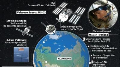 Après un séjour de près de six mois et demi dans la Station spatiale internationale (ISS), le Français de 39 ans et son collègue russe Oleg Novitski prendront place vendredi dans un vaisseau Soyouz qui atterrira environ 3h20 plus tard dans les steppes du Kazakhstan.