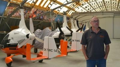 La société de M. Brezina achète des kits de gyroplanes fabriqués par une entreprise allemande. Lors de l'assemblage, l'appareil est muni d'un système permettant de basculer entre le moteur à essence qui fait voler l'appareil et le moteur électrique qui prend les relais avec les roues.