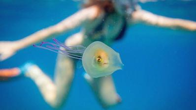 La photo d'un poisson en train de nager dans une méduse au large des côtes orientales de l'Australie fait fureur sur internet, où elle a été vue plus de deux millions de fois.