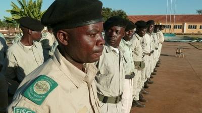 Un pas en avant, deux pas à gauche. Sous le soleil rouge du crépuscule angolais, Elias Kawina, ex-soldat pendant la guerre civile, entraîne sa troupe de 30 rangers tels des militaires pour combattre les braconniers dans la savane quasi inexplorée du pays.