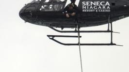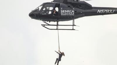 Suspendue par un fil au-dessus des chutes du Niagara, reliée à un hélicoptère par la bouche: c'est un nouvel exploit digne du livre Guinness des records qu'a réalisé jeudi Erendira Wallenda, membre d'une célèbre famille de funambules, devant des centaines de spectateurs côté canadien et américain.