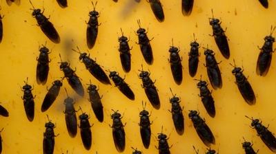 La mouche soldat noire et le Tenebrio molitor: ces deux espèces ont pour l'heure la préférence des entrepreneurs qui font le pari de la production industrielle de farines d'insectes pour la nutrition animale. Deux types d'insectes particulièrement riches en protéines et qui connaissent un cycle de reproduction rapide.