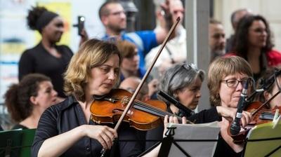 Initiative originale, celle de l'association Tatane qui a choisi de marier football et musique à la Philharmonie de Paris. Projeté en direct sur un écran géant, le match Croatie-Espagne était "commenté" en musique et en direct par l’orchestre symphonique du Conservatoire de Paris.