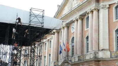 Sur la majestueuse place rose, entièrement bouclée par d'importantes forces de l'ordre, 150 artistes, musiciens, danseurs devaient se succéder à partir de 20h30 pour 3 heures et demie de spectacle gratuit retransmis sur France 2 depuis Toulouse pour la deuxième année consécutive.