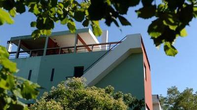 Azur rappelant le ciel, vert tendre se fondant dans la végétation, blanc éclatant renvoyant la lumière: dans ce quartier pas tout à fait comme les autres, les façades polychromes émergent au milieu des frondaisons et des haies fleuries, laissant entrevoir les silhouettes épurées d'une cinquantaine de maisons aux formes géométriques.