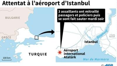 Au moins 36 personnes, dont des étrangers, ont été tuées et 147 blessées mardi soir dans un triple attentat-suicide à l'aéroport international Atatürk d'Istanbul, une attaque dont des images choc ont été diffusées et qui semble porter la marque du groupe Etat islamique (EI).