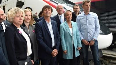 Le train inaugural pour Bordeaux, le premier à partir en début de matinée, est arrivé à destination avec à son bord le président de la SNCF, Guillaume Pepy, les ministres de la Transition écologique et solidaire, Nicolas Hulot, et des Transports, Élisabeth Borne.