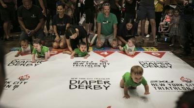 C'est une course où tout le monde rit, où les faux-départs sont légion et hochets et biberons autorisés: bienvenue à la course des bébés, qui réunit chaque année à New York une trentaine de chérubins autour d'un tapis de 10 m2, pour savoir qui traversera le plus vite, sous les cris attendris de leurs parents.