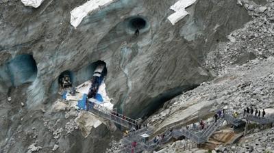 "Il n'y aura alors plus de glacier en face de la gare du Montenvers", inaugurée en 1909, prédit Christian Vincent. Un mauvais présage pour la compagnie du Mont-Blanc qui convoie 450.000 personnes par an sur ce site au point de vue exceptionnel - dont la majorité descendent les marches vers la grotte, ouverte l'hiver et l'été.