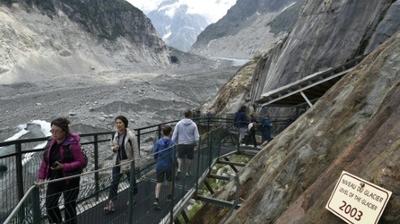 Depuis quelques années, "c'est un phénomène nouveau: les gens viennent là pour voir les effets du réchauffement", relève Jean-Marie Claret, exploitant du site depuis 1971.