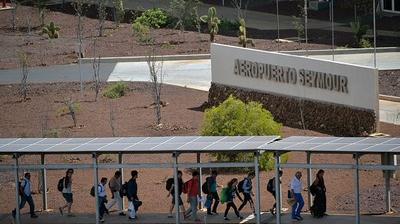 Pour faire fonctionner cet aéroport, par lequel transitent chaque année 400.000 passagers, en majorité des touristes, il ne faut, en plus de l'énergie de ses employés, que du soleil et du vent. "Ici, tout fonctionne avec de l'énergie renouvelable", souligne, à l'occasion de la première visite organisée pour la presse, Jorge Rosillo, directeur général de l'aéroport, désignant les panneaux solaires et les trois éoliennes géantes qui alimentent les infrastructures.