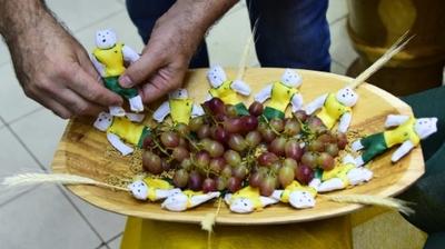 "Dans ce grand plat en bois ovale, je mets les 11 poupées représentant les joueurs de la Seleçao, les uns à côté des autres. Au milieu, je place des grains de raisin, des grains de riz et des épis de blé, qui représentent la prospérité. J'allume ces deux bougies jaune et verte pour envoyer de la lumière aux joueurs", poursuit Helio.