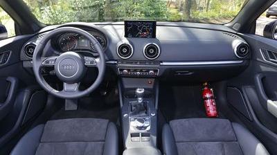 Le cabrio profite des proportions de l'A3 3 portes. Il peut désormais monter des jantes alu de 19” (équipement de base: 16” voire, sur notre Ambition, 17”). Cette exécution médiane jouit en outre de la suspension sport abaissée de 15 mm et des programmes de conduite Drive Select agissant sur les réponses du moteur et de la Servotronic. La direction progressive asservie à la vitesse demeure par contre une option, comme la plupart des aides à la conduite calquées sur celles des plus grosses Audi.