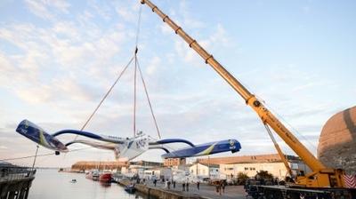Le bateau tout neuf devra d'abord subir quelques tests statiques à la base des sous-marins de Lorient, son port d'attache. Puis, le trimaran fera sa première vraie navigation ce week-end ou en début de semaine prochaine, si la météo reste favorable.