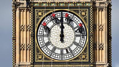 Casques sur la tête, seaux et éponges à la main, quatre techniciens spécialisés s'activent en haut du monument le plus célèbre de Londres. Les quatre faces de l'horloge, haute de 96 mètres et dominant le parlement britannique, sont astiquées et examinées pour vérifier qu'elles ne sont pas endommagées. Le dernier grand nettoyage de Big Ben remontait à 2010.