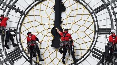 Casques sur la tête, seaux et éponges à la main, quatre techniciens spécialisés s'activent en haut du monument le plus célèbre de Londres. Les quatre faces de l'horloge, haute de 96 mètres et dominant le parlement britannique, sont astiquées et examinées pour vérifier qu'elles ne sont pas endommagées.