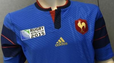 Le XV de France portera une première version de ce maillot samedi (21H00) en match de préparation à la Coupe du monde contre l'Angleterre. Un écusson spécial y sera ajouté pour le début de la compétition, le 19 septembre face à l'Italie.