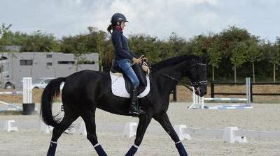 Tôt le matin, et malgré le temps frais, Anne-Frédérique Royon enchaîne tours de carrières et diagonales, au pas et au trot.