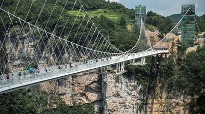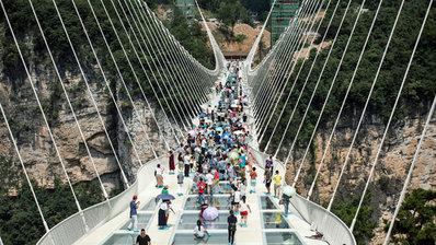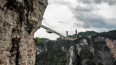 Touristes sujets au vertige s'abstenir. Le pont piéton en verre le plus long et haut du monde a ouvert au public samedi dans les spectaculaires montagnes de Zhangjiajie (centre de la Chine), réputées avoir inspiré le film américain Avatar.