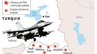 Depuis dimanche soir, les chasseurs F-16 et F-4 de l'aviation turque ont pilonné les bases arrière du mouvement rebelle dans les montagnes du nord de l'Irak, et des membres des forces spéciales ont franchi la frontière irakienne à la poursuite d'éléments du PKK.
